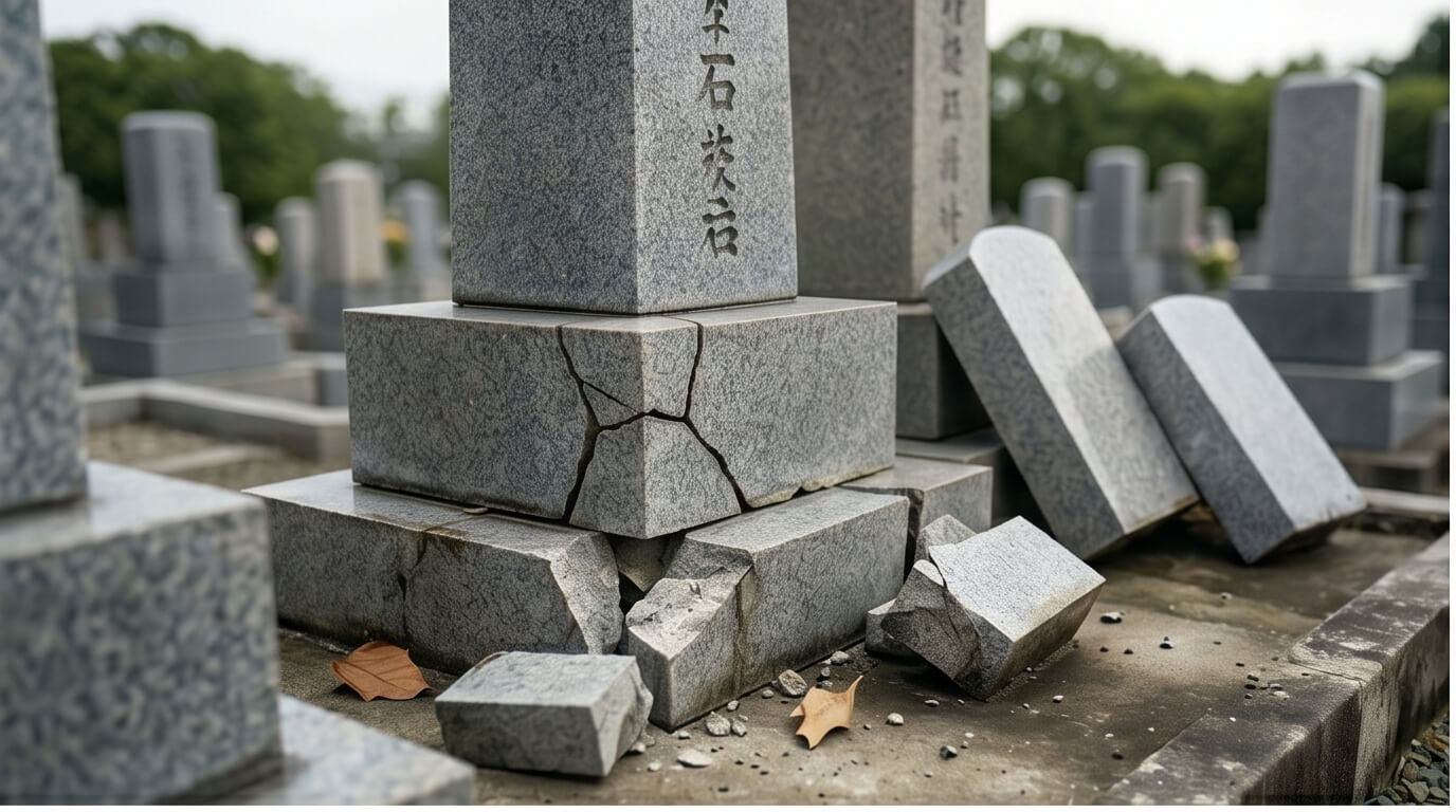 お墓は地震によって倒壊やズレといった被害を受けやすく、特に古い墓石は注意が必要です。接着施工や耐震金具、基礎強化などの対策を行うことで、被害を大きく減らすことができます。